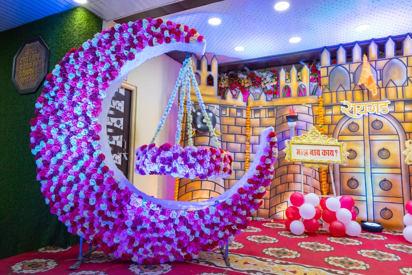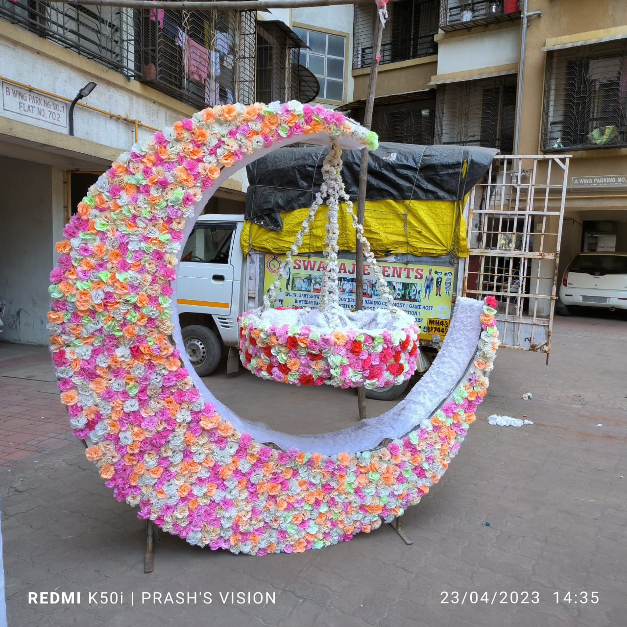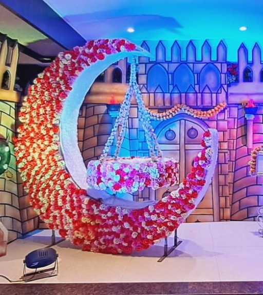 • 3D moon with tokri type jhula and artificial flower decoration on it