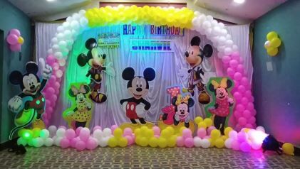 - 400 balloon decoration ( 1 balloon arch stage + ceiling and Entry balloon bunches )