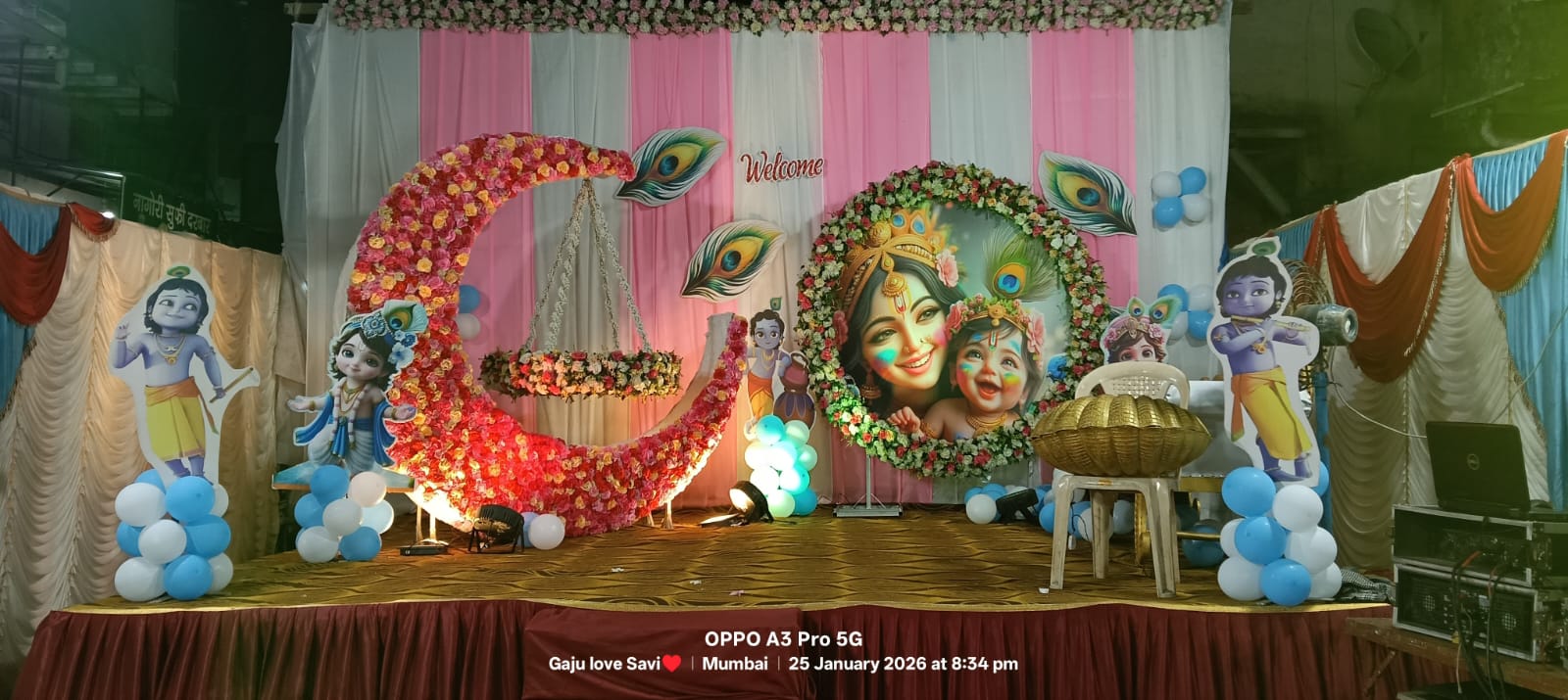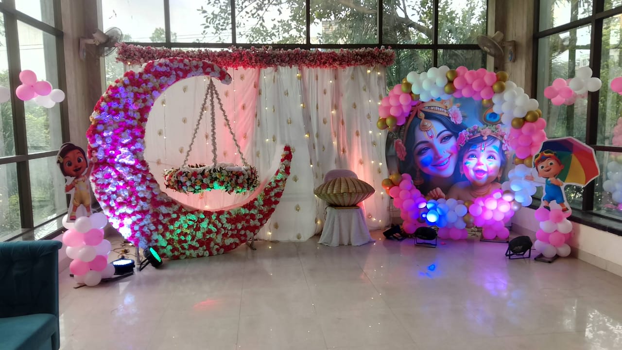 - 3D big moon with tokri jhula Artificial flowers on palna