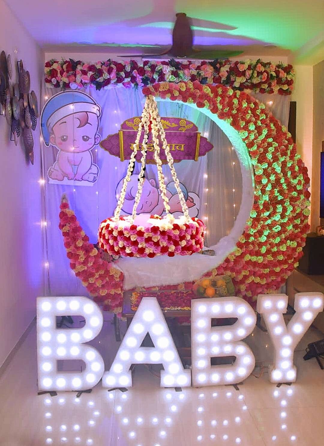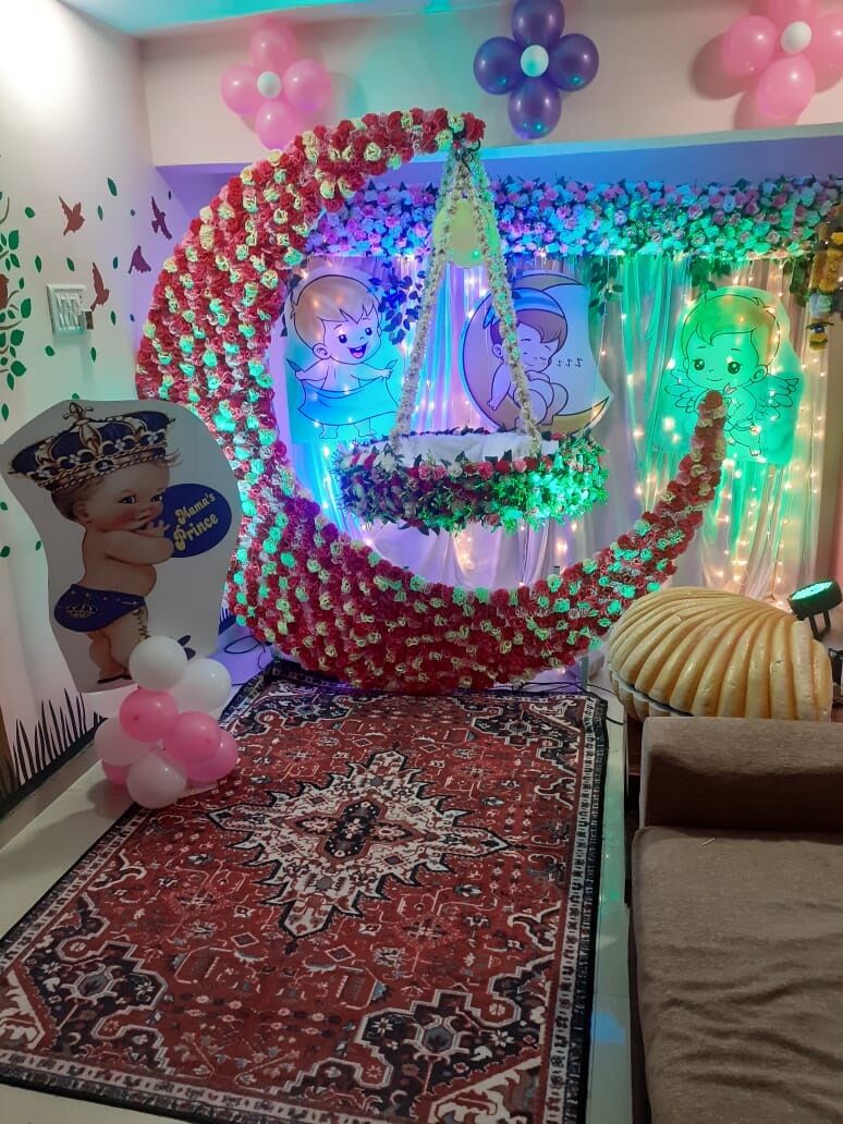 ▪️3D big moon Tokri jhula with Artificial flower arrangement